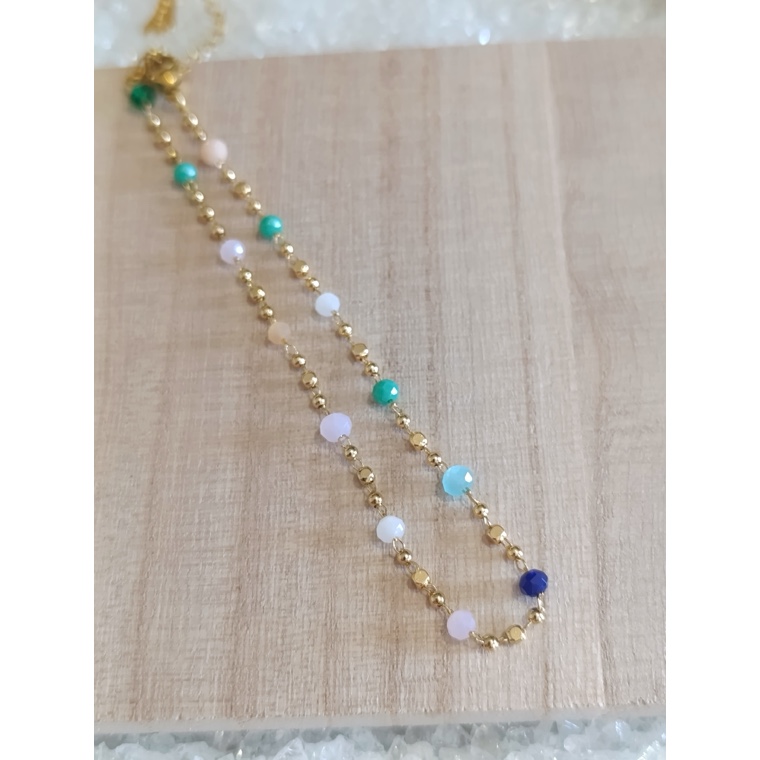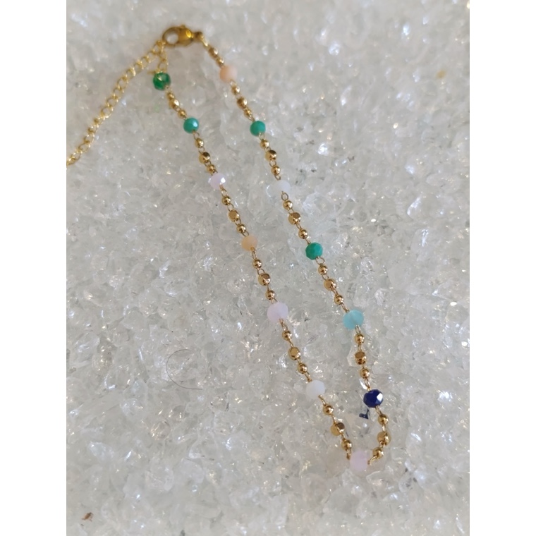 Αλυσίδα ποδιού σε χρώμα χρυσό , με πολύχρωμες χάντρες και ρυθμιζόμενο κούμπωμα (stainless steel)