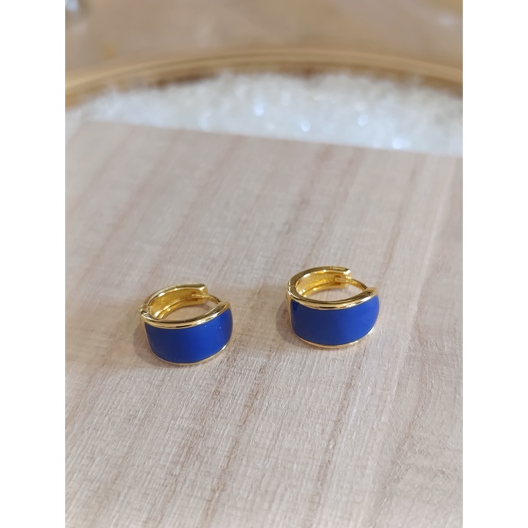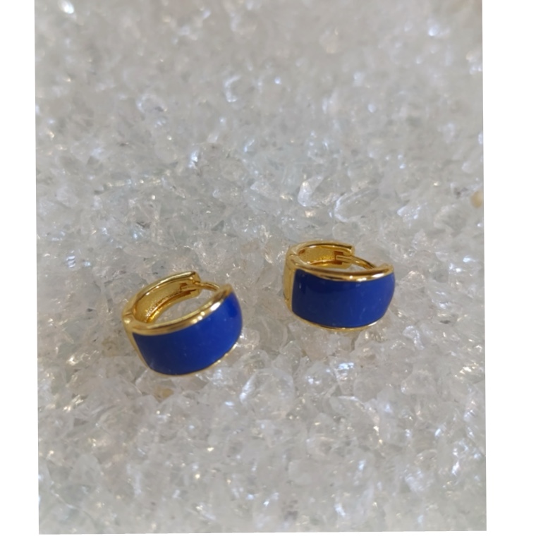 Σκουλαρίκια κρίκοι, μπλε-χρυσά και πράσινα-χρυσά, από ανοξείδωτο ατσάλι, 1,5εκ.