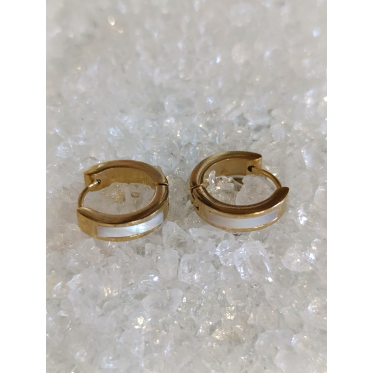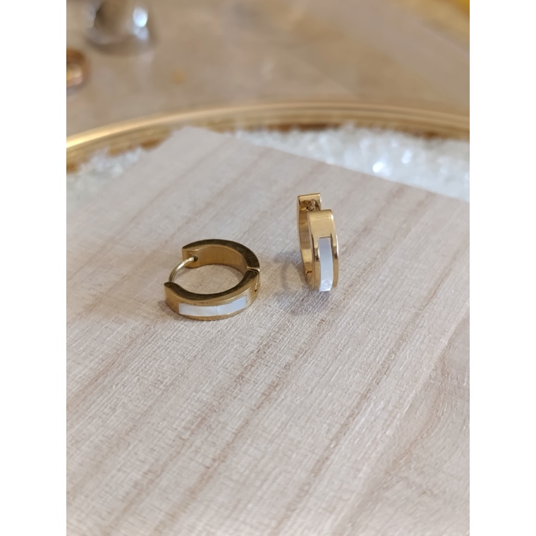 Σκουλαρίκια κρίκοι από ανοξείδωτο ατσάλι, σε χρυσή απόχρωση, με λευκό ιριδίζον 1,5 εκ.