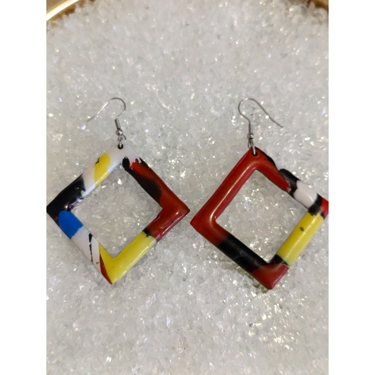 Χειροποίητα κρεμαστά σκουλαρίκια από πολυμερικό πηλό και ανοξείδωτο ατσάλι