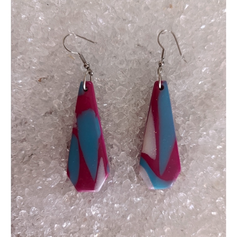 Χειροποίητα κρεμαστά σκουλαρίκια , από πολυμερικό πηλό και ανοξείδωτο ατσάλι.