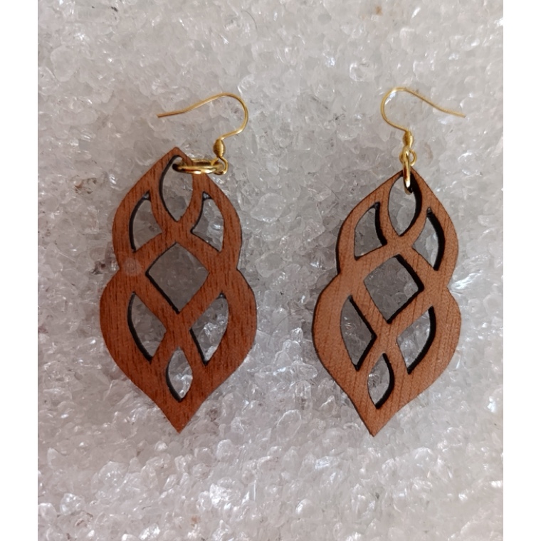 Χειροποίητα κρεμαστά σκουλαρίκια , από ξύλο και ανοξείδωτο ατσάλι.