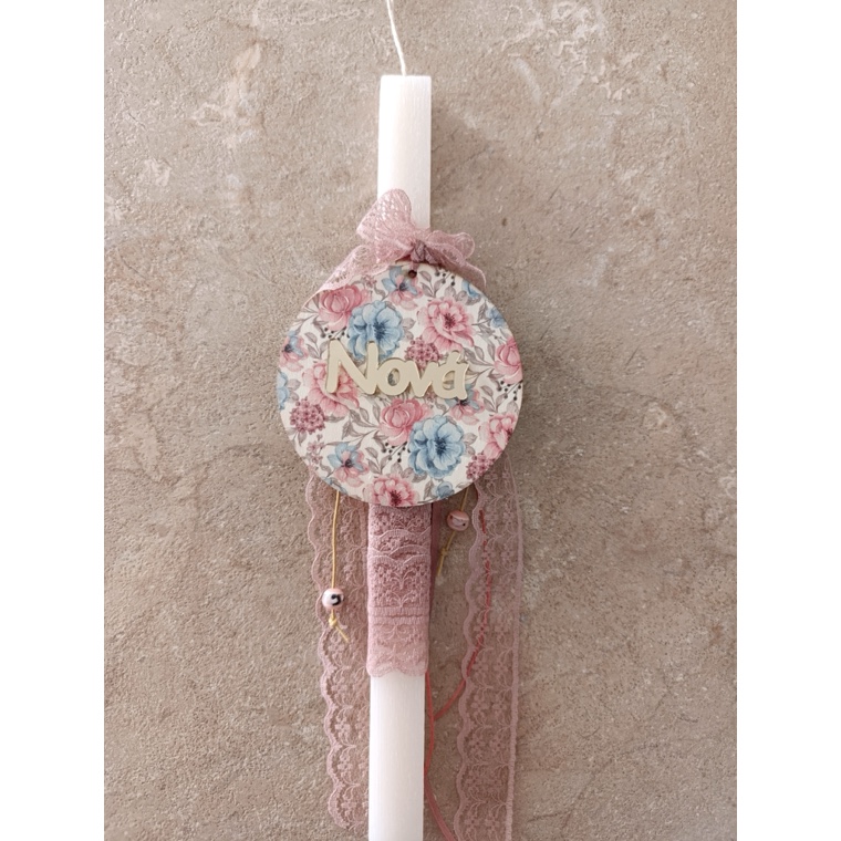 Χειροποίητη Πασχαλινή λαμπάδα με plexiglass Νονά, 30cm