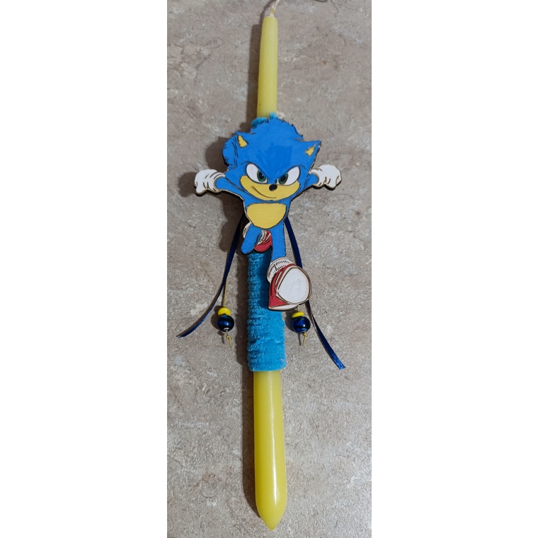 Χειροποίητη Πασχαλινή λαμπάδα με φιγούρα Sonic μαγνητάκι, 39cm