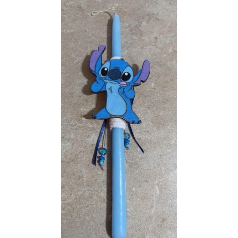 Χειροποίητη Πασχαλινή λαμπάδα με φιγούρα Stitch μαγνητάκι,  39cm