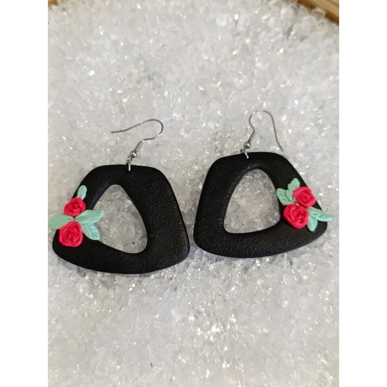 Χειροποίητα κρεμαστά σκουλαρίκια , από πολυμερικό πηλό και ανοξείδωτο ατσάλι.